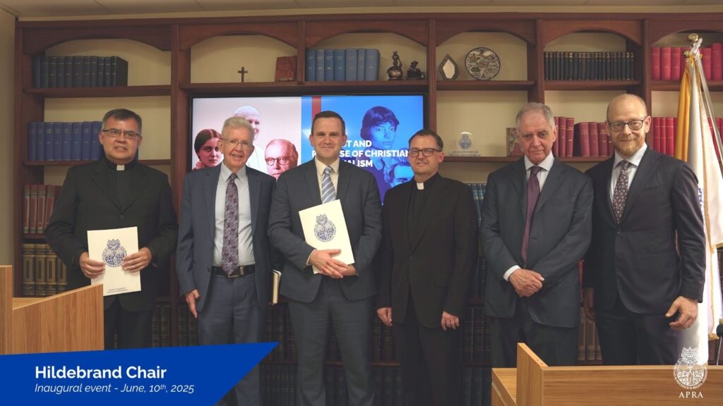 On June 10, 2025, we held an event in Rome to launch the new Hildebrand Chair for Christian Personalism at the Pontifical Regina Apostolorum University. We congratulate our esteemed Associated Scholar, Dr. Elisa Grimi, on being appointed inaugural director of the Chair. This important academic initiative is designed to foster research and scholarship, including co-sponsored events. We look forward to collaborating with other pontifical universities in Rome and around the world on key scholarly projects, notably in 2027 to mark the 50th anniversary of Hildebrand’s passing, and developing new programs through the Chair open to students from any pontifical university.